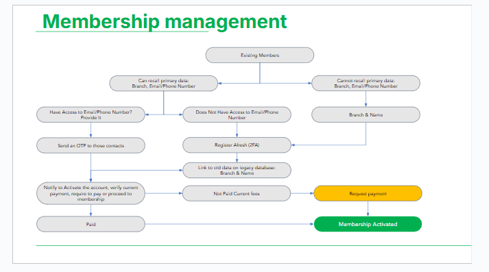 I began by mapping the existing membership management journey, identifying bottlenecks, and brainstorming solutions with stakeholders. This stage helped align the team on the core challenges and objectives.